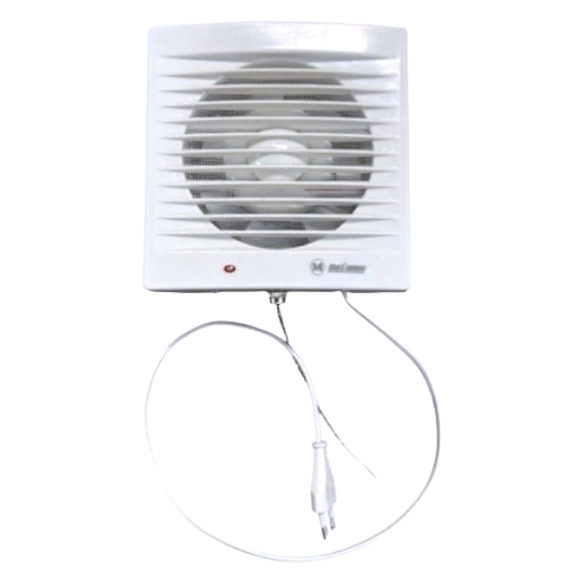 Тихий бытовой вытяжной вентилятор из ABS-пластика поставляется в комплекте с москитной сеткой и в картонной коробке.