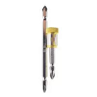 Две торсионные биты работают на скручивание, поэтому насадка отлично подойдет для закручивания в твёрдые материалы. Торсион сохраняет шлицы и бита служит в таких условиях гораздо дольше обычной жёсткой.
